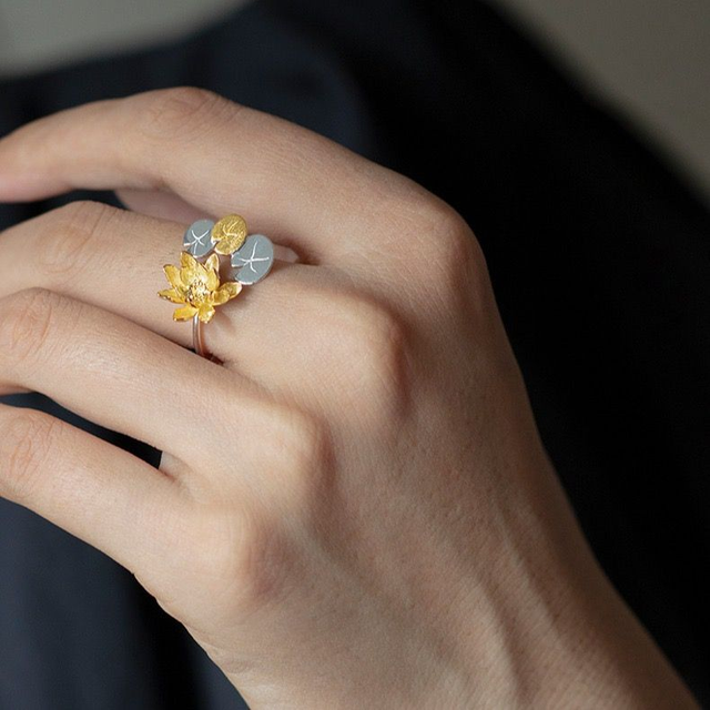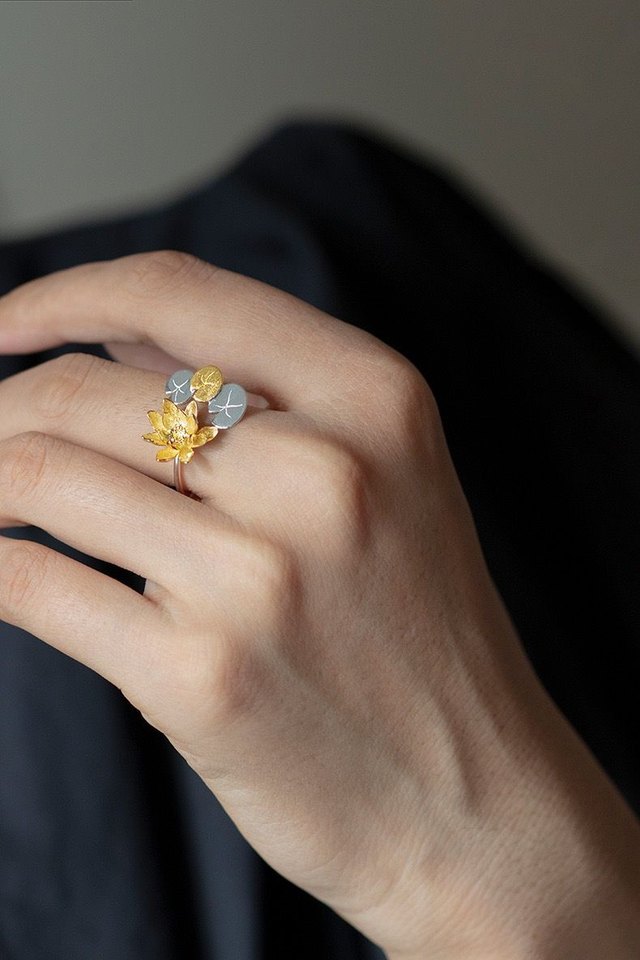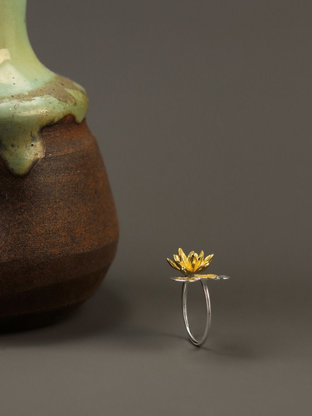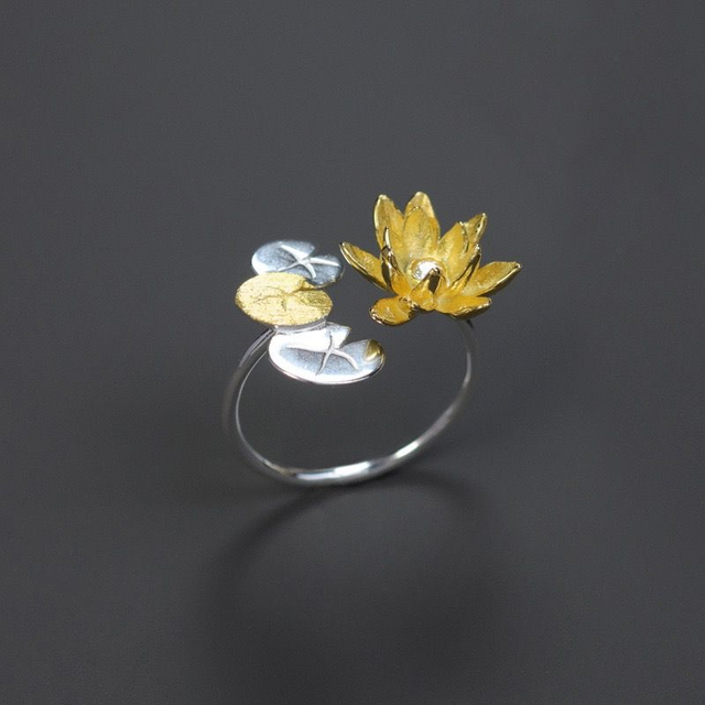 *Designer Silver Jewellery* Poem of the Pond, Water Lily Adjustable Silver Ring